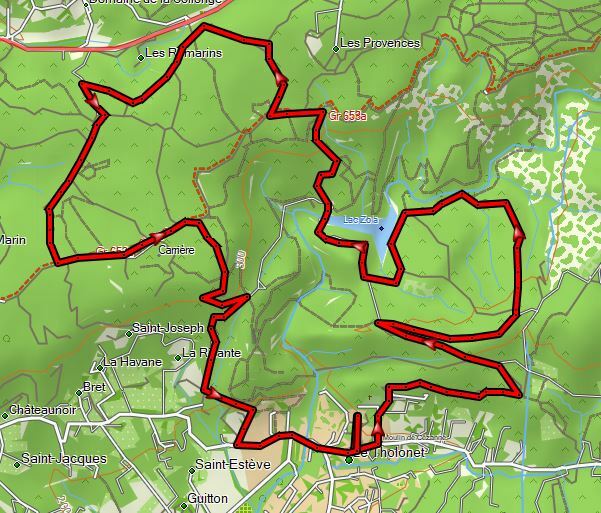 ITINERAIRE MN3 :Parking du THOLONET ...> Aqueduc de DOUDON ....> Le BANC...> BAS de la petite bétonnée ...> Rives de ZOLA ......> Barrage de ZOLA ......> Aux Panneaux à droite , grimper au GR .....> Tour de la FORÊT (Sens horaire inversé) ....> Les ROCHERS ....> Retour par le Château ou le barrage Zola .