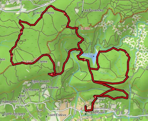 CIRCUIT MN3 : PK du THOLONET......> Aqueduc de DOUDON ......> Le BANC ....> Les Rives de ZOLA ....> Barrage de ZOLA .....> Montée au GR (après les panneaux) ....> Tour de la FORÊT (Sens Horaire inversé ) ....> Les Rochers ....> Descente vers le Barrage Zola (piste bétonnée) ......> le BANC ....> la Fenêtre ...> PK du THOLONET .